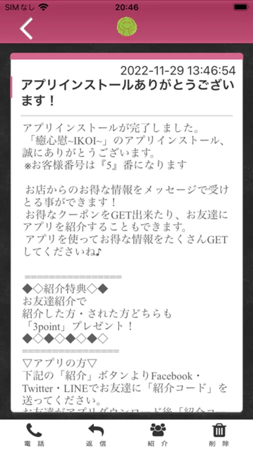 癒心慰-IKOI-のアプリをSNSを通じてお友達に紹介する事ができます。
