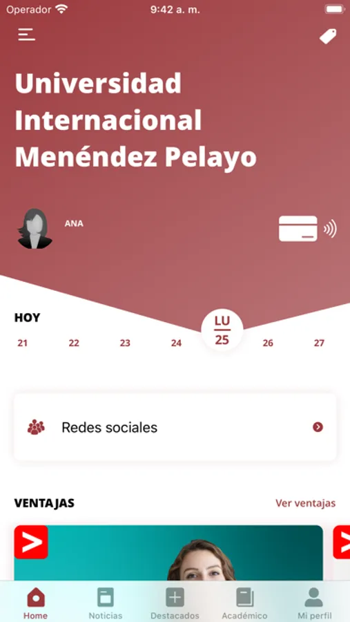 • Perfil privado: Todos tus datos personalizados según tu perfil universitario. Consulta tus asignaturas, calificaciones, etc. Y también tu tarjeta universitaria digital. ¡Siempre la llevarás contigo!