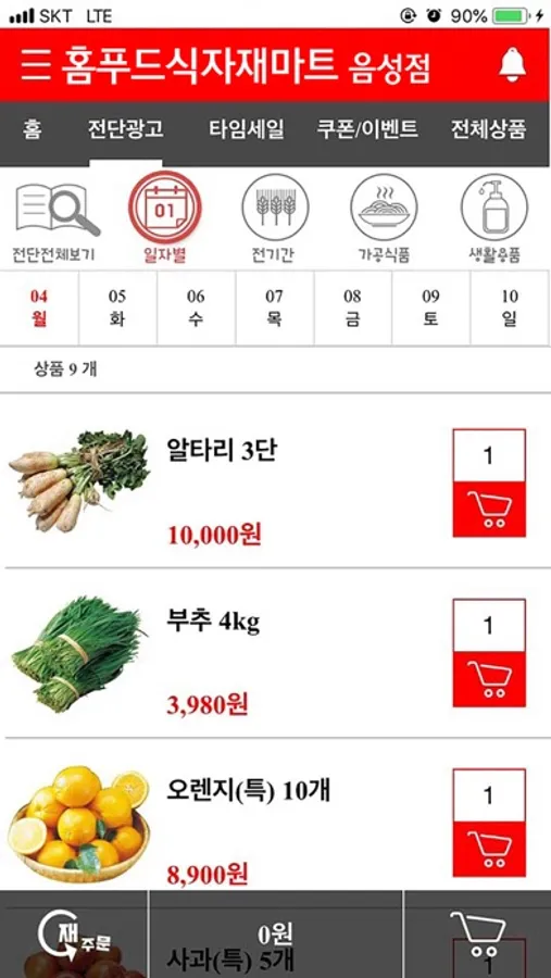 홈푸드식자재마트 음성점에서 진행중인 행사상품을 기간별,종류별로 구분하여 알려드립니다.