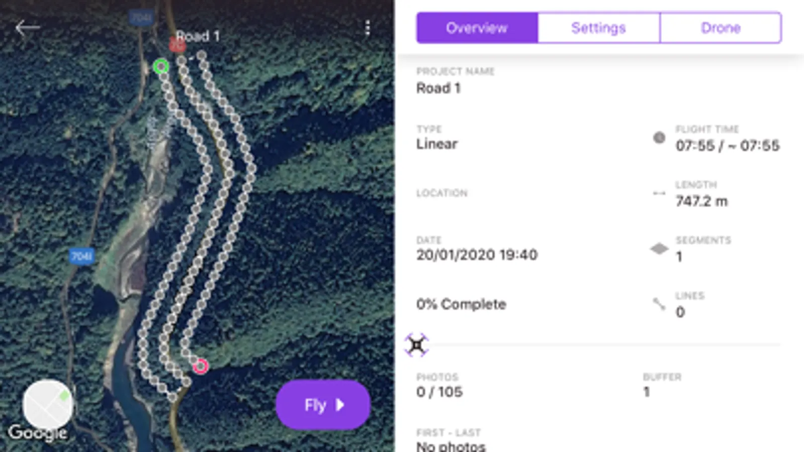Our comprehensive Tap2Map 3D flight planner for DJI drones app comes with 5 different flight mission types. Each flight mission is designed to be intuitive, accurate and reliable giving you the flexibility that you need even for the most challenging areas or features that are planned to be surveyed. The App also comes with extra features. Each feature will help you to optimize the flight efficiency and keep your flight parameters at their best, for a reliable image collection quality.