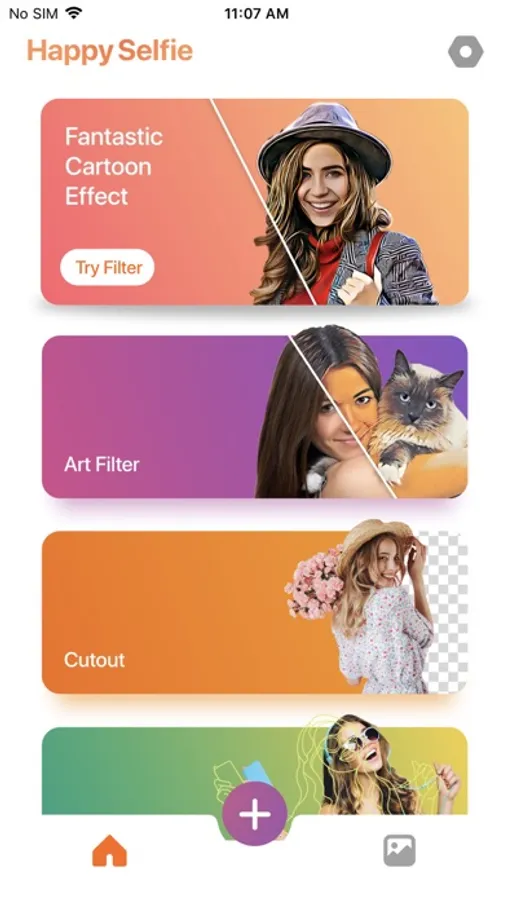 Happy Selfie uses machine learning and create 100+ AI Filters and remove background with AI Cutout.