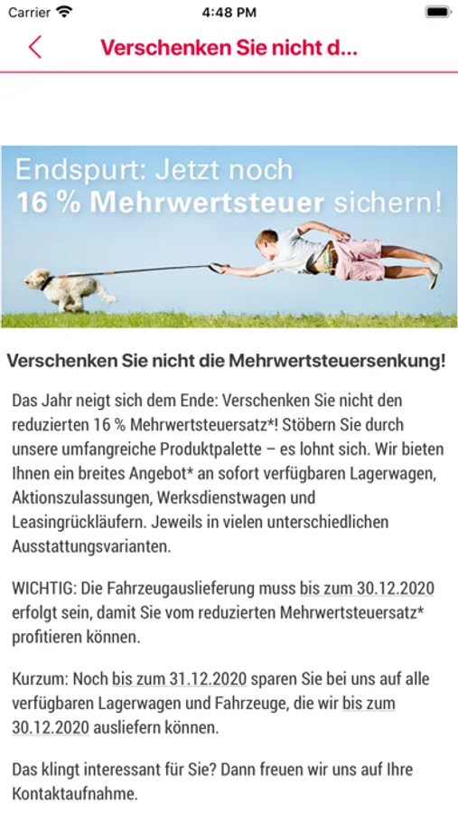 mobile Terminanfrage für persönliche Beratung und Probefahrt über den appinternen Chat