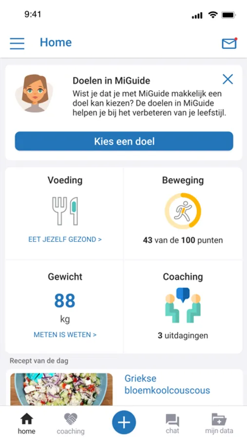 Wil je je leefstijl verbeteren? De MiGuide app kan je hierbij helpen! We weten allemaal dat een gezonde leefstijl belangrijk is, maar het is niet altijd even makkelijk om dit vol te houden. MiGuide helpt je om jouw doelstellingen te behalen en begeleid je - samen met jouw huisarts en/of leefstijlcoach - naar een gezonder leven.