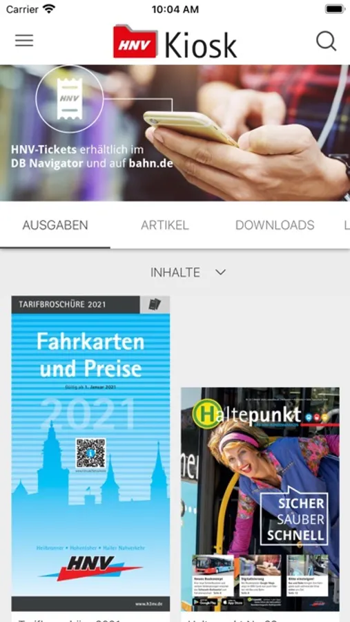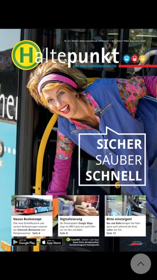 Zwei Mal im Jahr erscheint das HNV-Kundenmagazin Haltepunkt. Darin informiert der Heilbronner · Hohenloher · Haller Nahverkehr (HNV) kostenlos über Nahverkehrsthemen aus dem Verbundgebiet und darüber hinaus. Neben aktuellen Meldungen rund um Bus, Bahn und Stadtbahn im HNV-Land finden sich im Haltepunkt gerne auch Geschichten, Hintergrundinfos und mehr, die sich nicht starr in Linie, Takt und Fahrplan pressen lassen. Alljährlich zum 1. Januar erscheint zudem die aktuelle HNV-Tarifbroschüre. Hierin findet sich alles zu den Fahrkarten und Preisen im Verkehrsverbund.