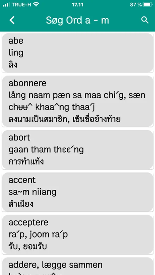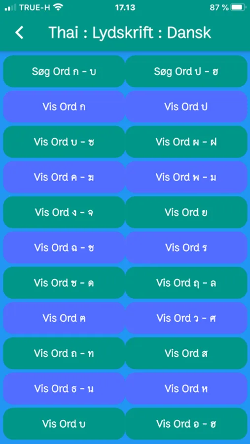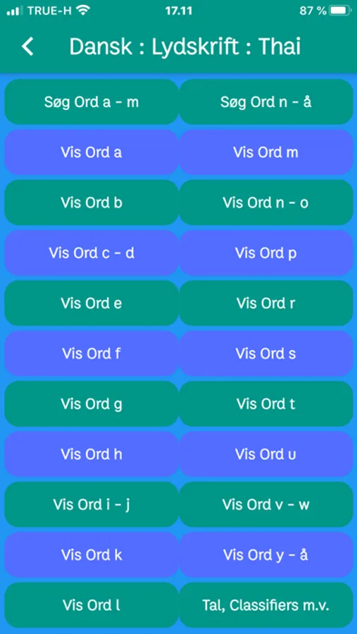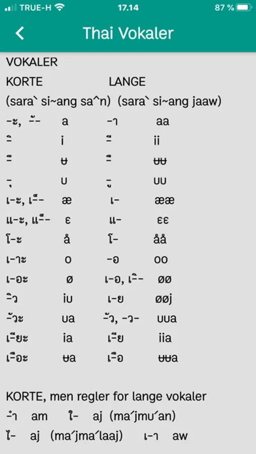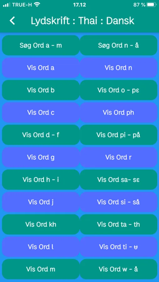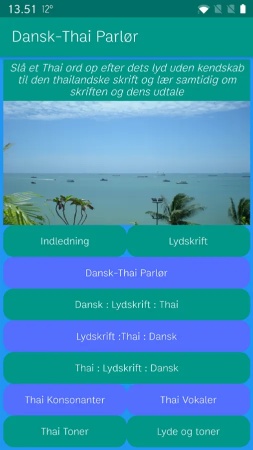 Denne App består af dels en parlør, dels tre ordlister, der er sorteret alfabetisk efter henholdsvis danske ord, lydskrift for thai ord og thai ord med thailandsk skrift.