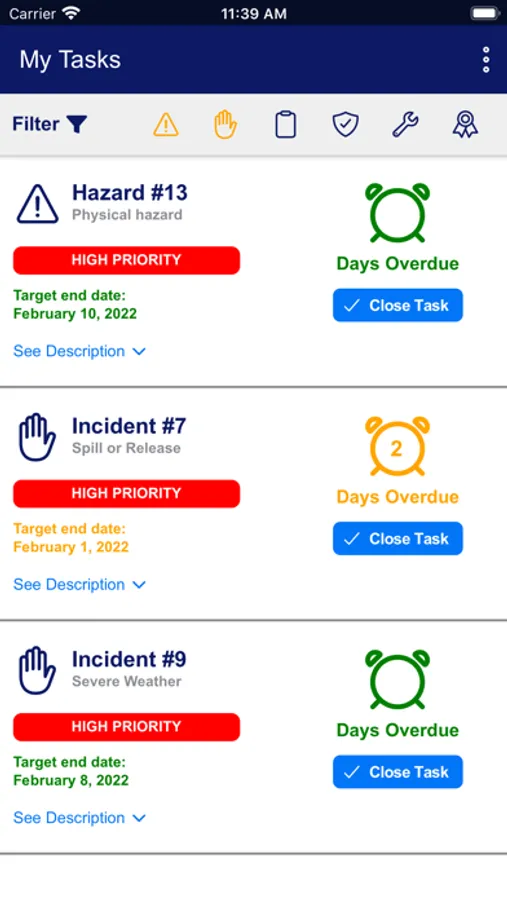 Reporting of hazards, incidents, and inspections works online and offline and allows inclusion of photos. From the mobile dashboard users can open tasks assigned to them, update tasks with the actions taken, add photos to support their work and close them out. All data submitted from the app goes directly into the Company’s cloud based StellarHSE database, triggering email notifications and updating Company H&S stats. From the mobile H&S docs module, users can quickly find and read any documents tehir Company posts to StellarHSE. Fast, easy, and friendly design. Requires that the user’s Company has a StellarHSE cloud subscription and has assigned the user an active account.