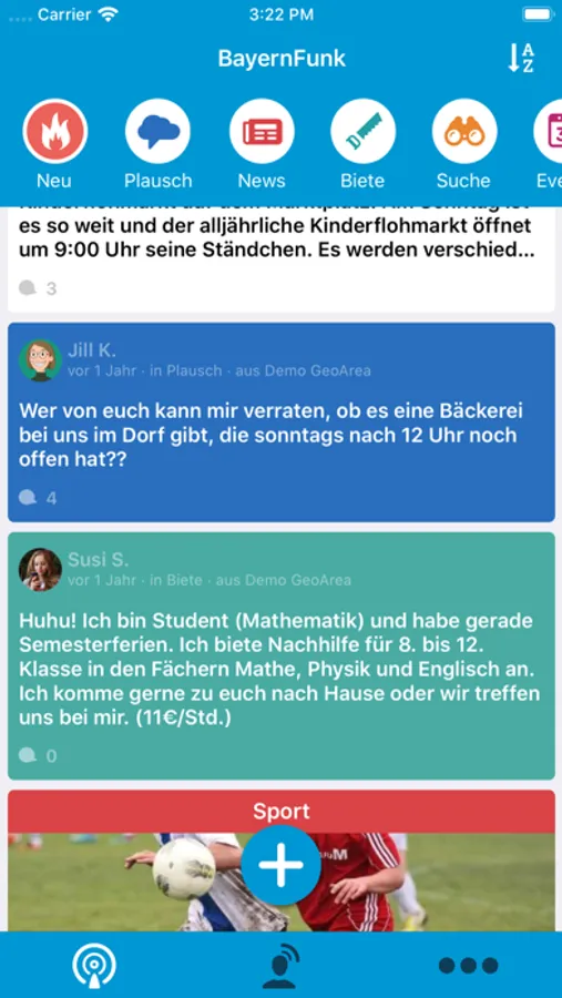 BayernFunk ist die Kommunikationszentrale für Bayern! Bürger*innen können ihre Hilfe anbieten, Gesuche einstellen oder einfach zwanglos miteinander ratschen.