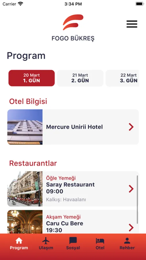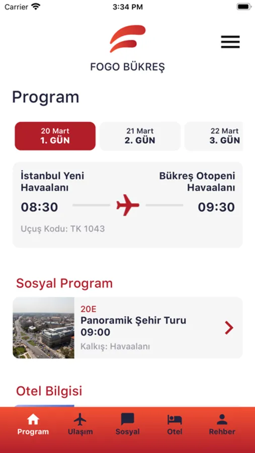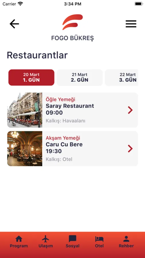 Yapacağınız seyahatin günlere ayrılmış özetini görüntüleyebileceğiniz bölümdür. Bu bölümden; o günün açıklaması, o günün ulaşım bilgisi, o gün yapılacak sosyal program bilgisi, kalınacak otel bilgisi ve o gün gidilmesi planan restaurant bilgilerine kolayca ulaşabilirsiniz.