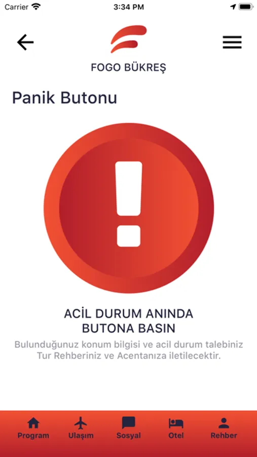 Acil durumlarda tek bir dokunuş ile rehbere ve acenteye durumunuzu ve konumunuzu iletebilirsiniz.