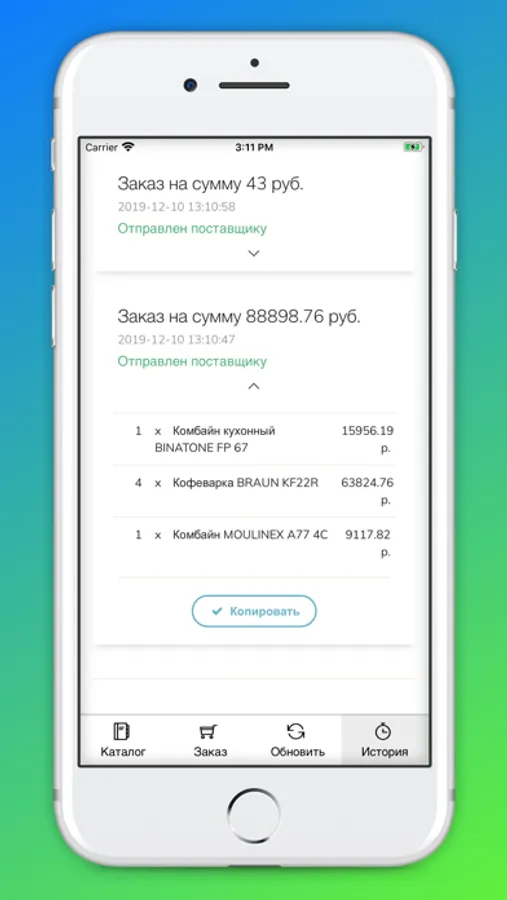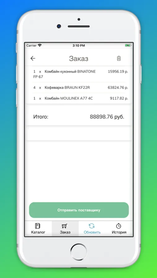 Представляет собой электронный Прайс-лит с возможностью сделать заказ и отправить поставщику.