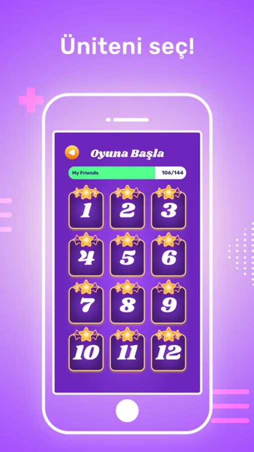 Yarışmaya başlamadan önce sınıfınızı, yarışmak veya tekrar etmek istediğiniz üniteyi, kelime mi kalıp mı çözmek istediğinizi, yarışmanın süreli mi süresiz mi olacağını ve cevapların kaç şık ile geleceğini seçmelisiniz. Daha sonra "OYNA" butonu ile yarışmayı başlatabilirsiniz.