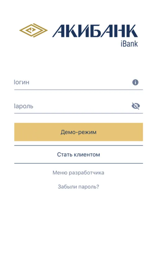 Для доступа в мобильное приложение используйте логин и пароль, который используете в системе Интернет-банк