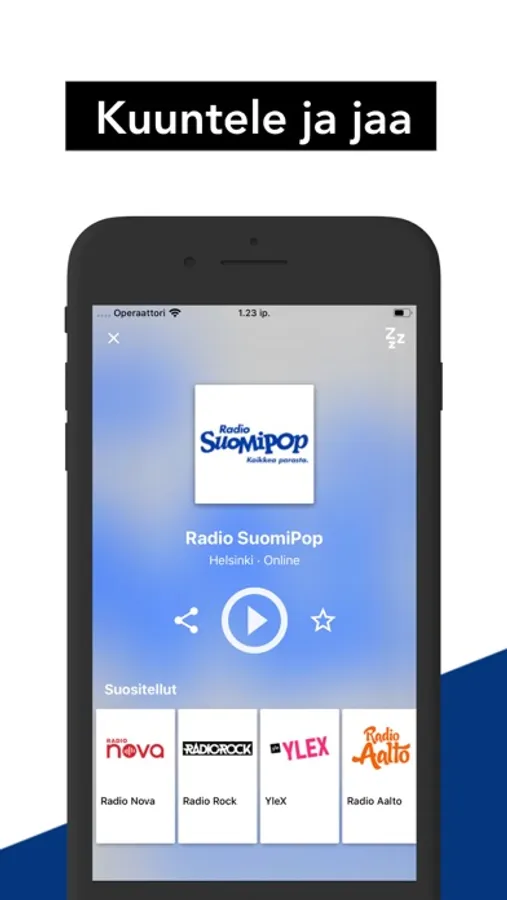 With Radio Finland FM, you can listen to all the live broadcast radio stations in Finland, such as Radio SuomiPop, Radio Nova, Radio Rock, YleX, Radio Aalto, Yle Puhe, Yle Radio Suomi, Iskelmä, NRJ Finland, Radio City, Loop, Radio Nostalgia, SuomiRock, Järviradio, Basso, Radio Pooki, Radio Helsinki, Radio Dei, Yle Radio 1 and many more.