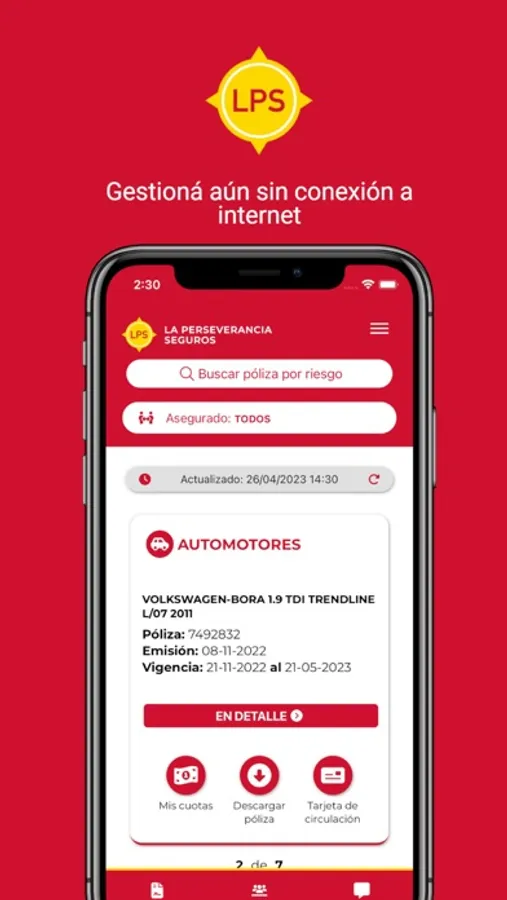 • ¡Modo offline disponible! Accede a tus pólizas y datos personales sin conexión a Internet, para que puedas consultarlos en cualquier momento y en cualquier lugar.