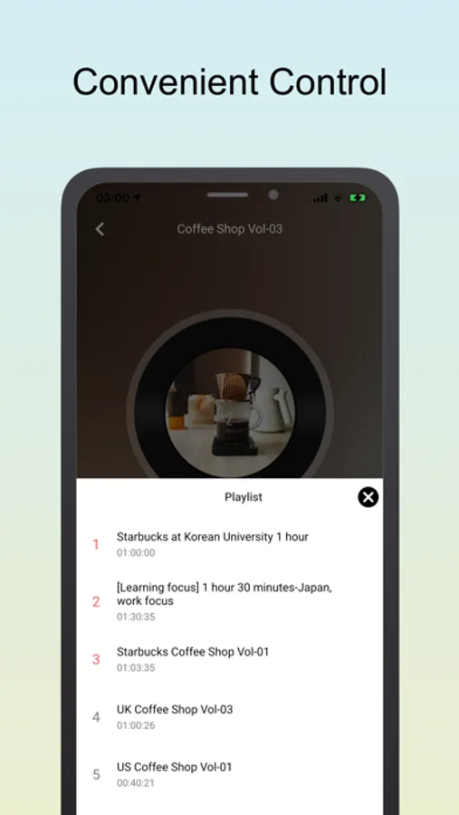 In the coffee shop, I use the ambient sound in the coffee shop to adjust your attention and make you more focused, which can make you feel happy and improve work efficiency.