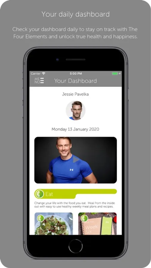 It shows you your weekly meal plan, your daily recipes, your workouts and the podcasts that will unlock true health and happiness.