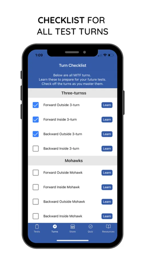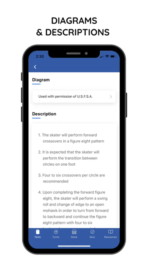 • Instructional Content for All 62 Test Turns: Enhance your turn execution with in-depth resources including slow-motion turn videos, technique descriptions, on-ice turn tracing videos, definitions of each turn, problem-solving techniques for challenging turns, and a list of patterns that include each turn.