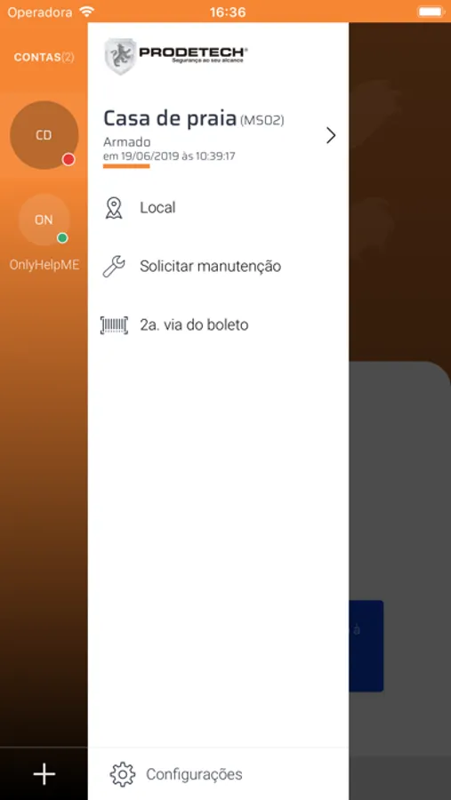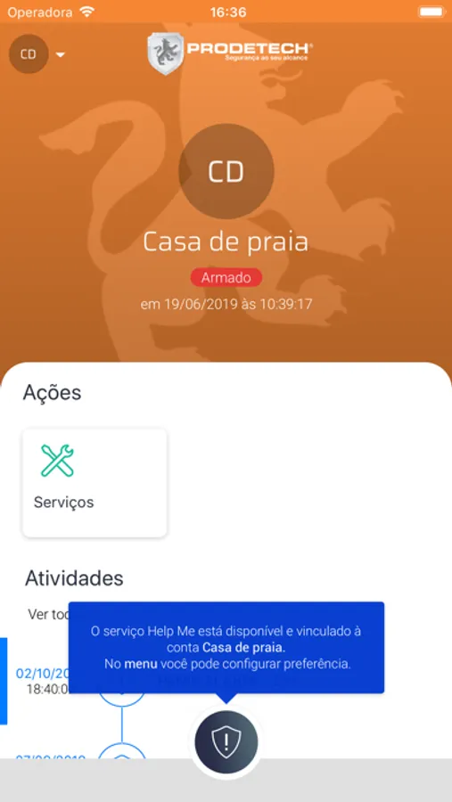 O Prodetech Security permite que você interaja com o seu painel de alarme diretamente no seu smartphone. Com ele o cliente monitorado pode acompanhar diretamente via celular ou tablet todas as atividades do seu sistema de segurança. Por meio do aplicativo é possível saber o status do painel de alarme, armá-lo e desarmá-lo, visualizar as câmeras ao vivo, verificar eventos e ordens de serviço abertas e realizar chamadas telefônicas para contatos cadastrados no seu perfil. É a segurança que você precisa na palma da sua mão.