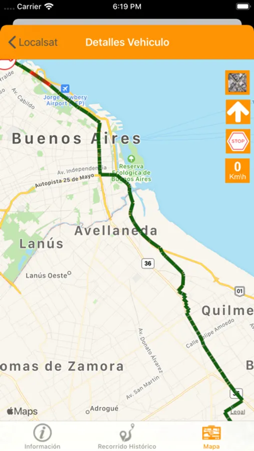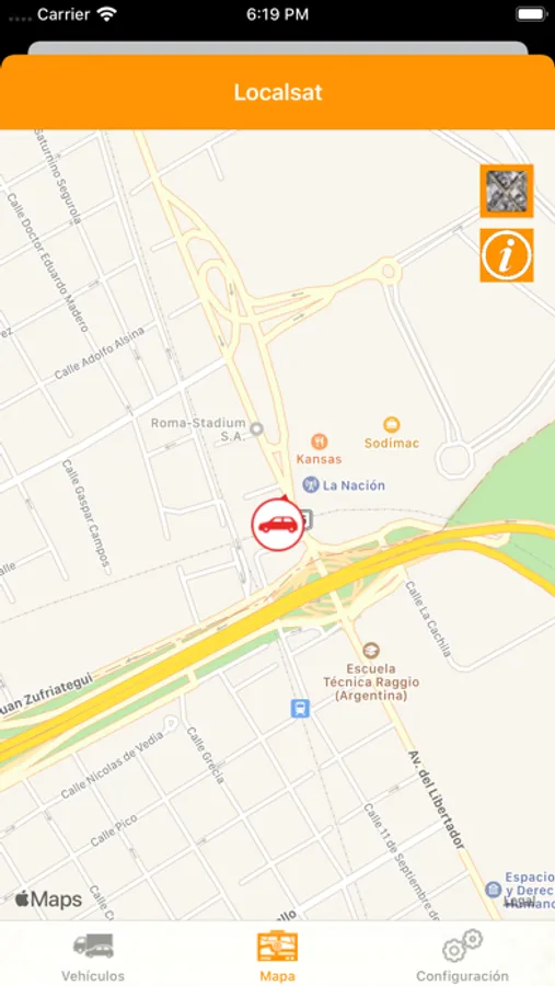 Con la aplicación de Localsat podés ver, en tiempo real, la ubicación exacta de tus vehículos, realizar el seguimiento en vivo de cualquiera de ellos, ver su recorrido histórico, reportes de velocidades, paradas y detenciones.