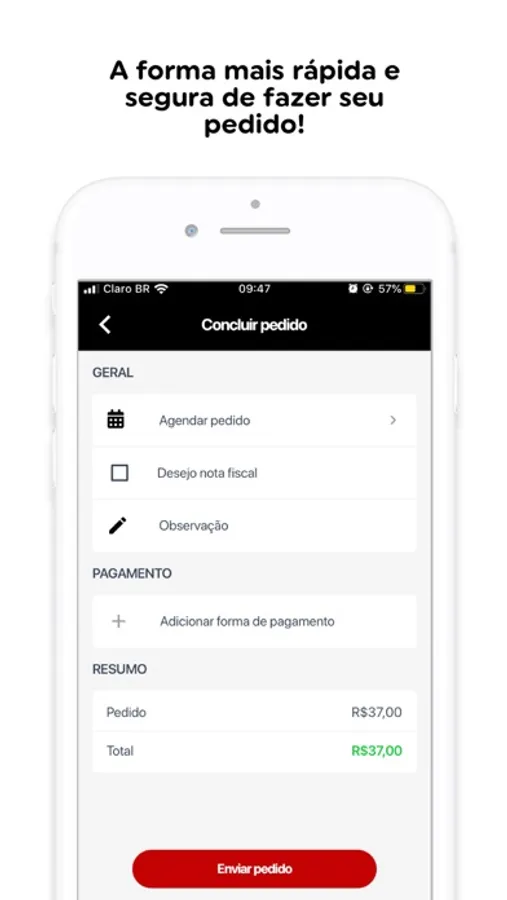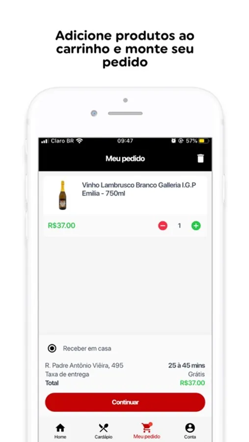 No app, você encontra de forma rápida o cardápio completo e ainda pode utilizar a ferramenta de busca para localizar diretamente os produtos que você deseja.