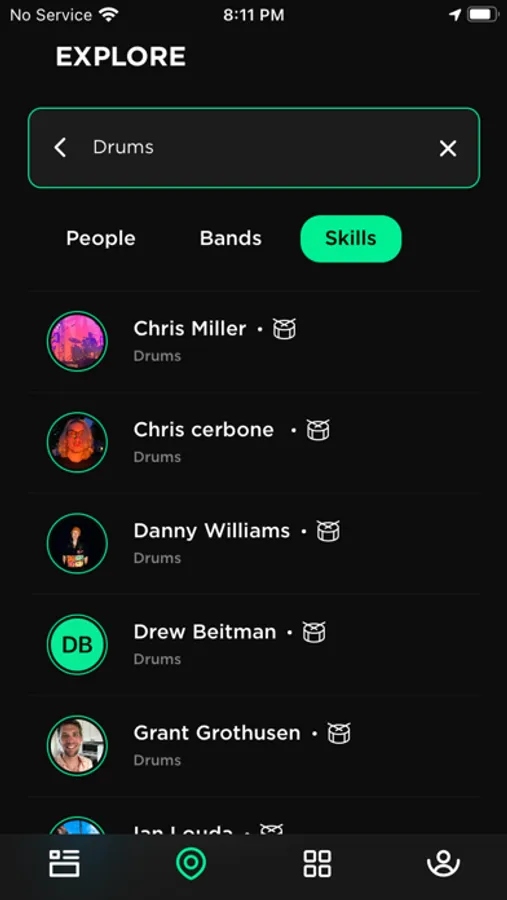Ability to SEARCH individual and band profiles by skill, name or band name