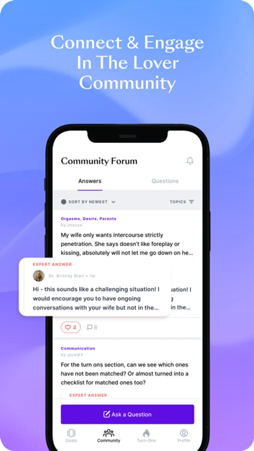 Unlock the full potential of your relationship with Lover, the sex therapy app that combines cutting-edge couples therapy techniques with innovative intimacy-building exercises and tools.