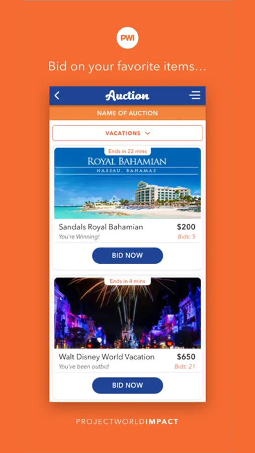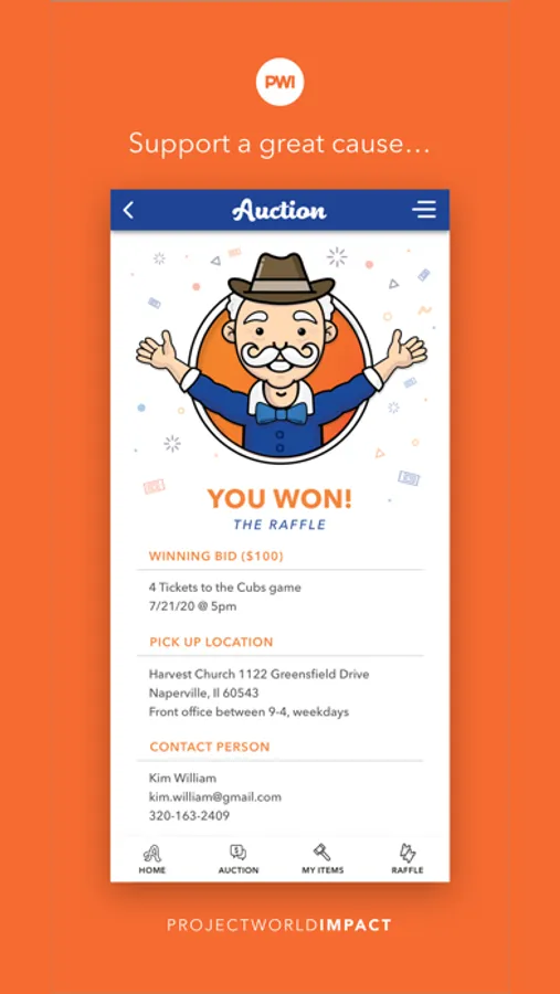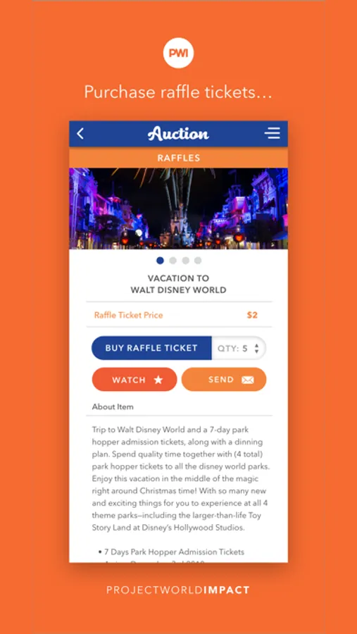 PWI Auction is a nonprofit silent auction app that allows you to purchase raffle tickets, bid on auction items, and more for a good cause all from your phone!