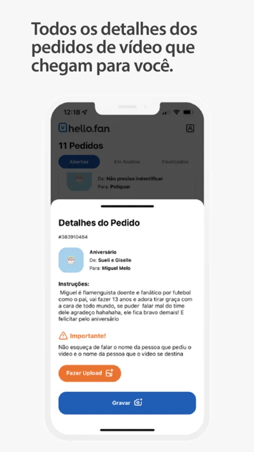 Somos uma plataforma que permite pessoas presentearem amigos ou familiares com vídeos personalizados de ídolos. São influenciadores, empreendedores, cantores, atletas e muito mais.