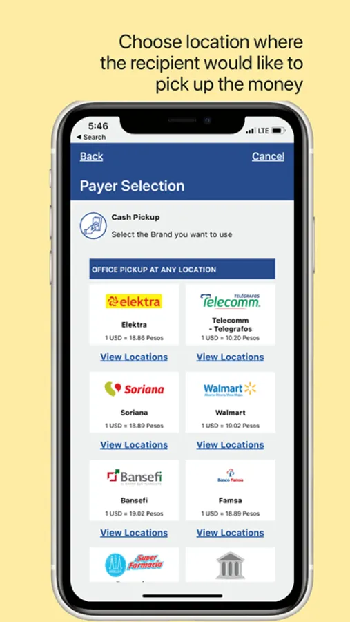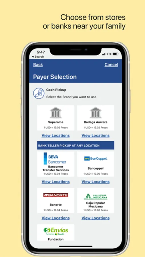 Pay using a Bank Account or Debit Card and send directly to banks or cash pickup locations