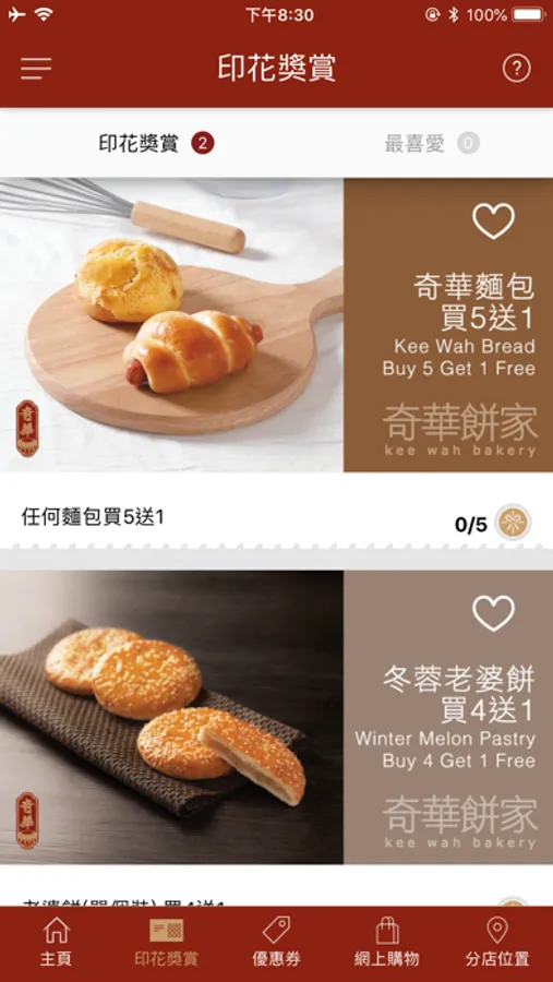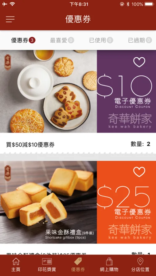 1. Cash Rebate Rewards: For every $50 HKD spent at a Kee Wah Store (excluding special offer products), you will earn 1 Coin via the mobile app. Earn 10 coins and you will receive a $5 HKD cash coupon.