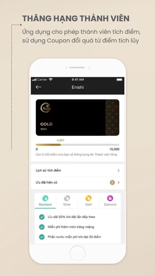 Chúng tôi phát hành đến quý khách phiếu giảm giá để sử dụng tại nhà hàng ENISHI. Để được áp dụng phiếu giảm giá, quý khách gửi lại phiếu giảm giá khi thanh toán. - Tích lũy điểm: