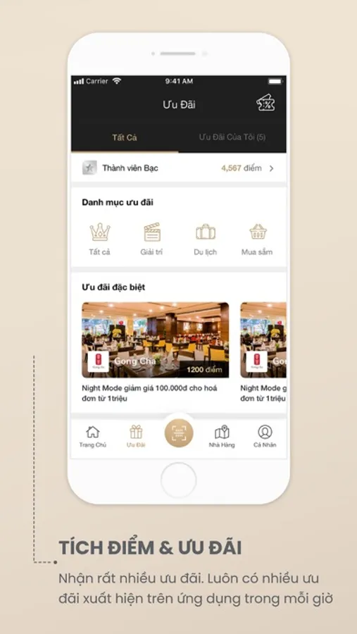 dùng bữa tại nhà hàng sẽ được tích lũy điểm theo số tiền thanh toán, số điểm tích lũy
