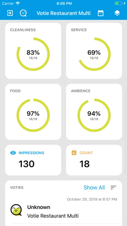 The Votie Admin App has been developed to provide lightning fast results to Votie operators. All the power of our online portal in your pocket. Instant access to customer opinions, and even the ability to seamlessly respond to customers right from their responses.