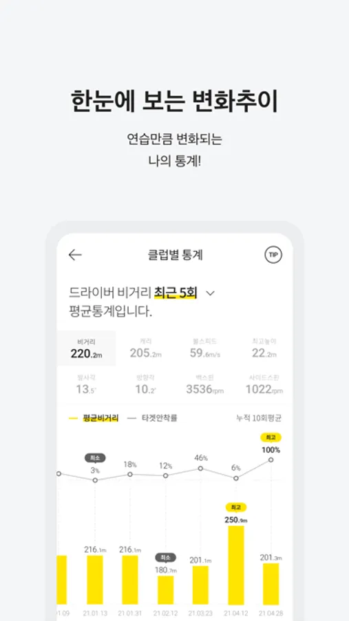 골프연습에 필요한 데이터가 한눈에 쏙쏙!