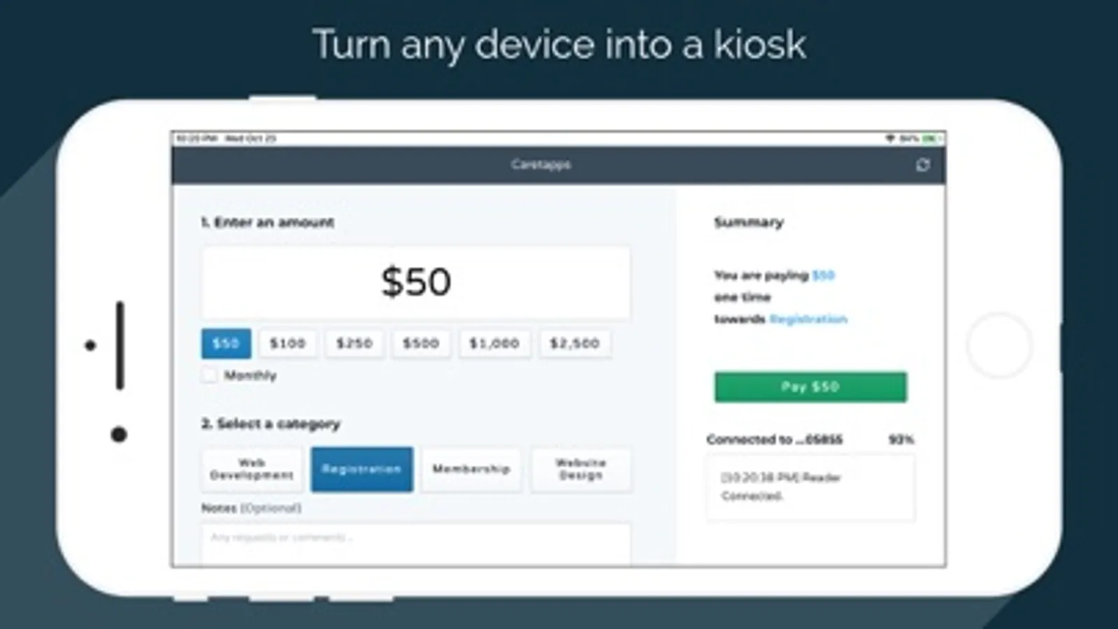 Goodbricks Terminal allows organizations and small businesses with Goodbricks account to accept in person payments, registrations and other forms of payment quickly and easily with a mobile card reader.