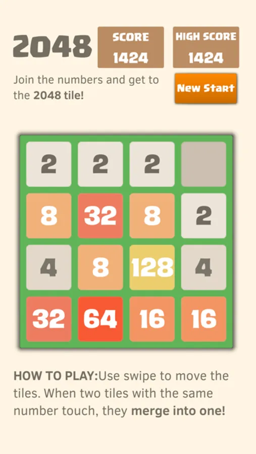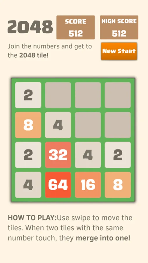 Get to the 2048 tile, and reach a high score!
