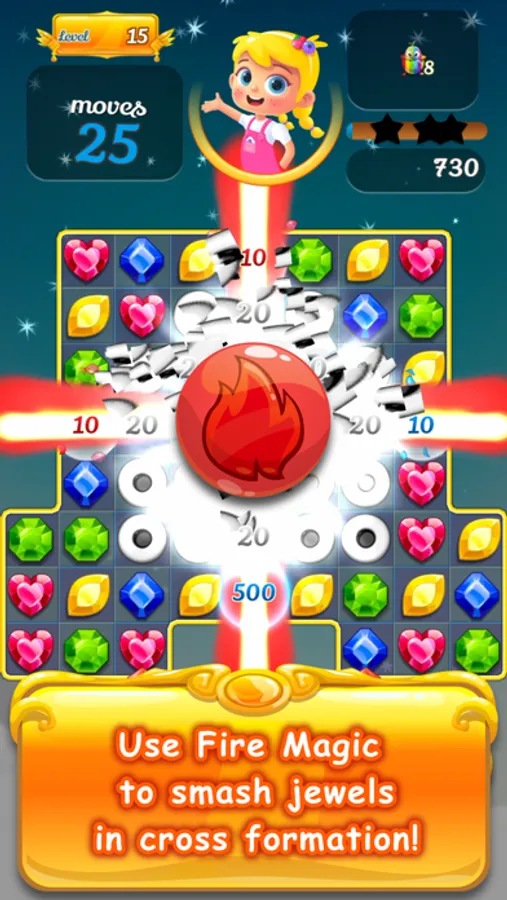 Match 3 jewels of the same color to make them disappear.