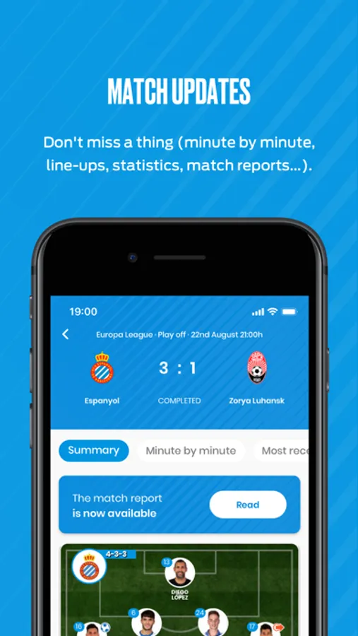 • Check up on minute by minute updates on matches, the calendar, results and squad details
