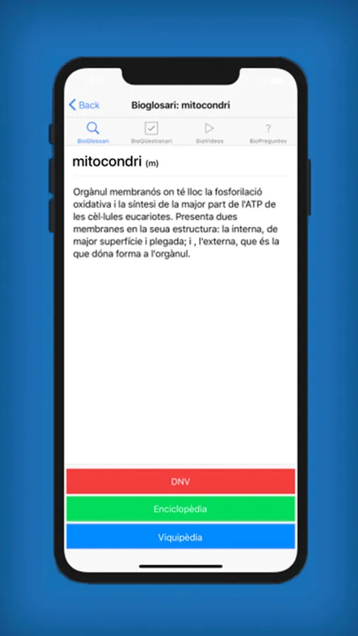 Glossari de termes relacionats amb la Biologia, que inclou definició i enllaços a altres diccionaris en línia.