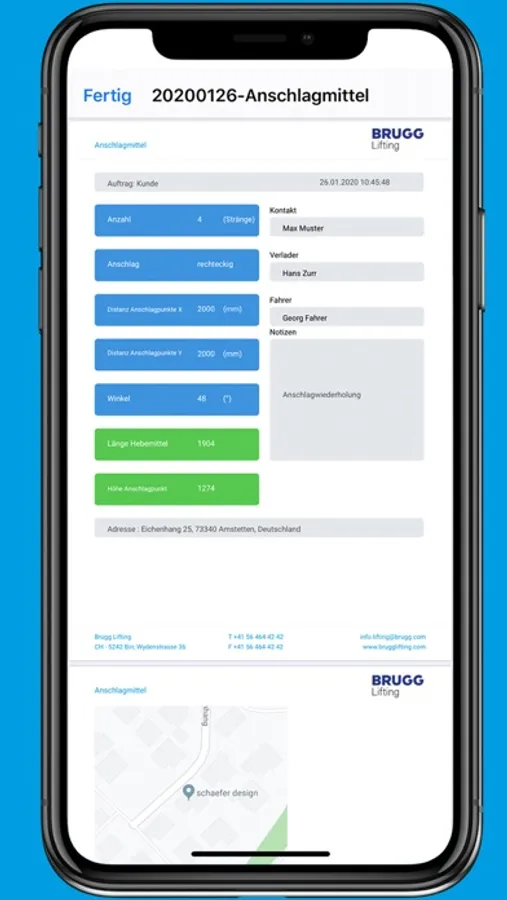 The Brugg-Team is at your disposal for questions and suggestions under info.lifting@brugg.com. If you wish to report an error in the app, please send an email to info@schaefer-design.de.