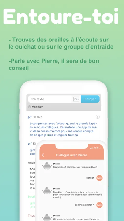 Aidé par l'intelligence artificielle, Pierre pourra te parler et te répondre de façon naturelle. N'hésite pas à lui poser des questions sur ton arrêt, lui demander des conseils, ou de te remonter le moral.