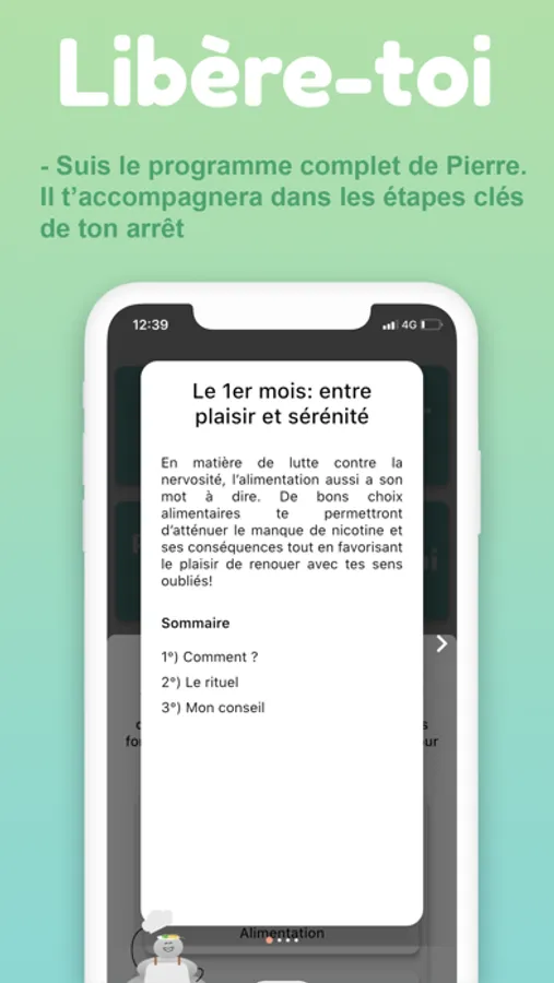 Pierre ton Coach te suivra tout au long de ton parcours de la préparation à la libération. Il te donnera tous les jours des citations inspirantes et des défis à réaliser pour t'aider à changer tes habitudes. Il te proposera aussi un programme complet intégrant :