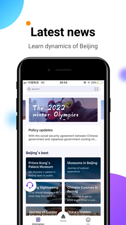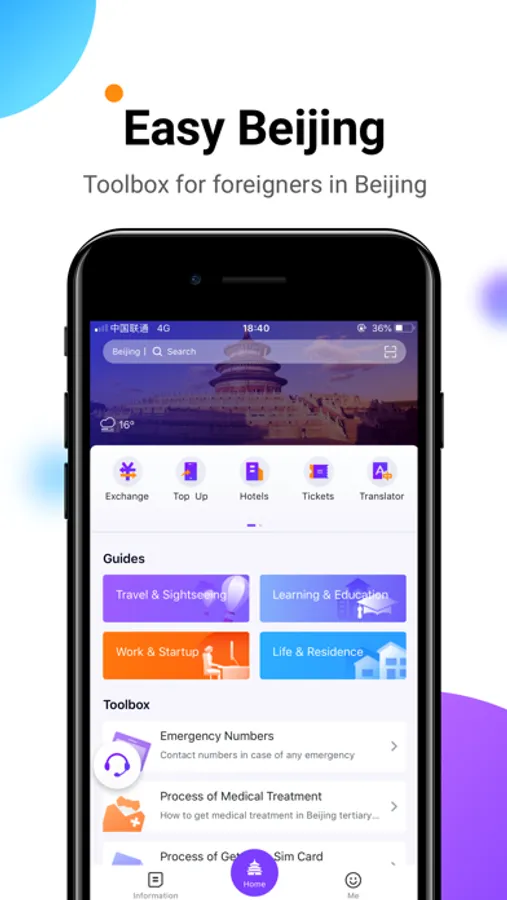 With digital life functions of hotel reservation, ticket purchase, map navigation, car hiring, mobile phone recharge and just-in-time translation, and managing in all-directional service system including international moving, children school-entering, car management, etc., it makes you realize a complete coverage living situation in Beijing.