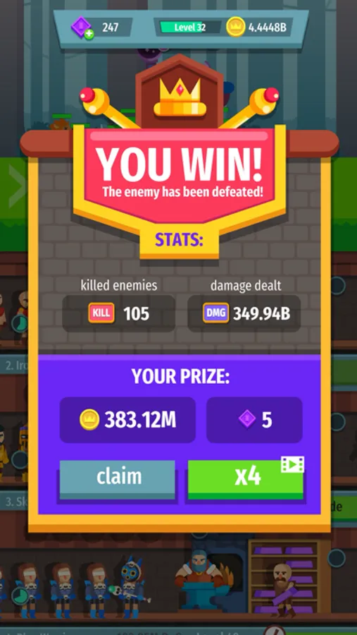 Tap to upgrade your smiths and produce better magic gear. Your army will start winning even when you idle and start defeating enemies, and collecting loot. With this loot, you can craft epic swords, bows and axes to unlock better troops and win the war while you afk heroes.
