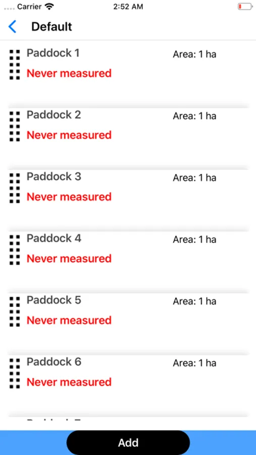 The application collects data and gps points from the Jenquip EC20 hardware via Bluetooth. A user can create multiple farms and add as many paddocks as needed. There is no limit on the amount of data collected.