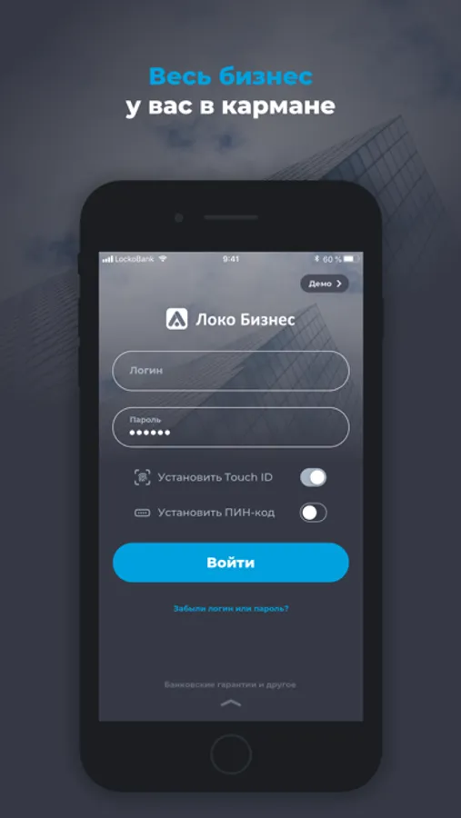 Мобильное приложение Локо Бизнес доступно зарегистрированным пользователям интернет-банка Локо Онлайн,