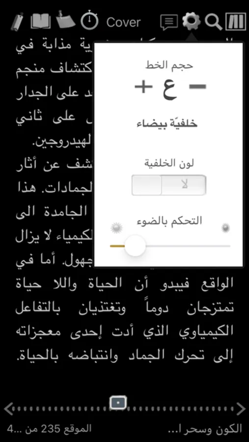 استمتع بتصفح الكتاب بطريقة مسلّية ومريحة عبر استعمال خاصّيّة الزّوم لتكبير الصّفحة أو تصغيرها. كما يمكنك التحكّم بحجم الخط ولون الخلفيّة ودرجة الإضاءة، للحصول على تجربة قراءة ممتعة ومريحة، كما يمكنك استعمال خاصّيّة "الخلفيّة اللّيليّة" لتتمكن من القراءة ليلاً بكل سهولة.