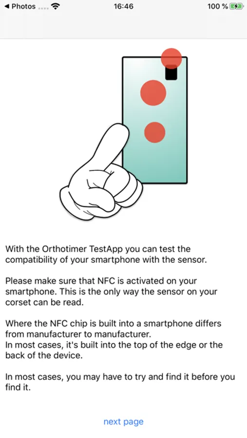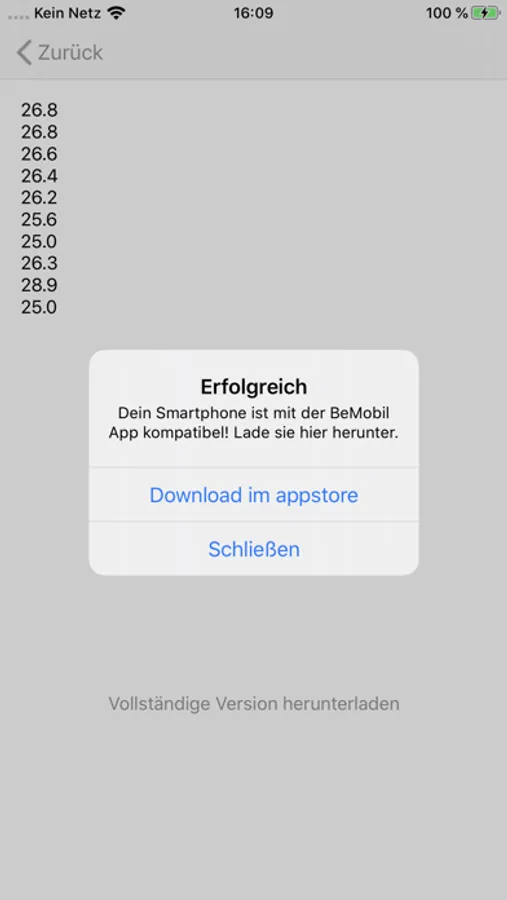 To verify if your phone can recognize the orthotimer, simply install the app and follow the instructions. If your phone is compatible, the latest temperature values from the orthotimer will be read and displayed. Then you can also use the BeMobil app: