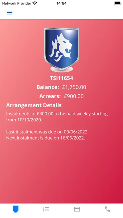 The app shows the amount owed, what has been paid (including date and amount), payment arrangement details and what is outstanding, with user-friendly colour coding: