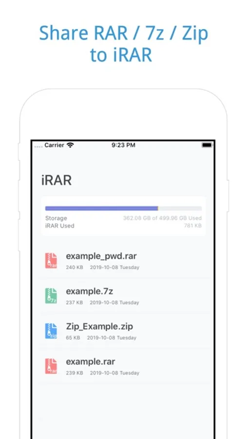 iRAR is designed to extract RAR, 7z, Zip compressed files.